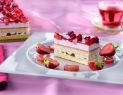 Description | Deep frozen bar cake, rhubarb mousse with rhubarb pieces (31.3%) and strawberry mousse (29.5%) in the middle of sponge finger (15.7%) infused with strawberries (7%), topped with strawberry pieces (7.8%) and red icing (8.7%), ready to eat |